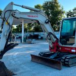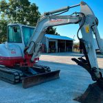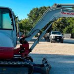 The enclosed cab provides operator comfort and protection with heat, air conditioning and a pattern changer for added convenience. With rubber tracks, a 70″ stick, 35″ bucket and a versatile overall setup, this Takeuchi TB260 is an appealing option for buyers seeking a capable mini excavator ready for daily use.